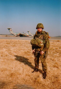 どういう事かと言うと、従来の軍用傘は主傘が後、予備傘が前の2分割式ですが、フランスの「最新」傘は